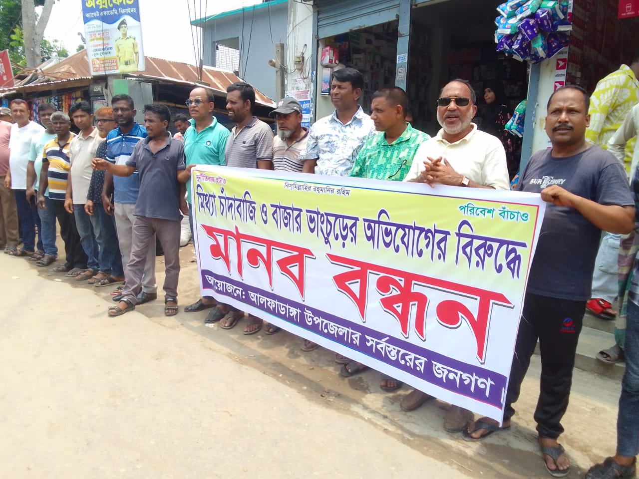 আলফাডাঙ্গায় বিএনপির একাংশের মানববন্ধ।