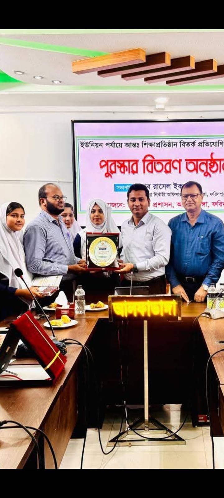 আজ রোববার (৫ অক্টোবর) আলফাডাঙ্গা উপজেলা নির্বাহী কর্মকর্তা রাসেল ইকবাল চ্যাম্পিয়ন দলের দলনেতা সাবরিনের হাতে ক্রেস্ট ও পুরস্কার তুলে দেন। এ সময় উপজেলা একাডেমিক সুপারভাইজার আশরাফুর রহমানসহ বিভিন্ন বিদ্যালয়ের প্রধান শিক্ষক ও সহকারী শিক্ষক উপস্থিত ছিলেন।