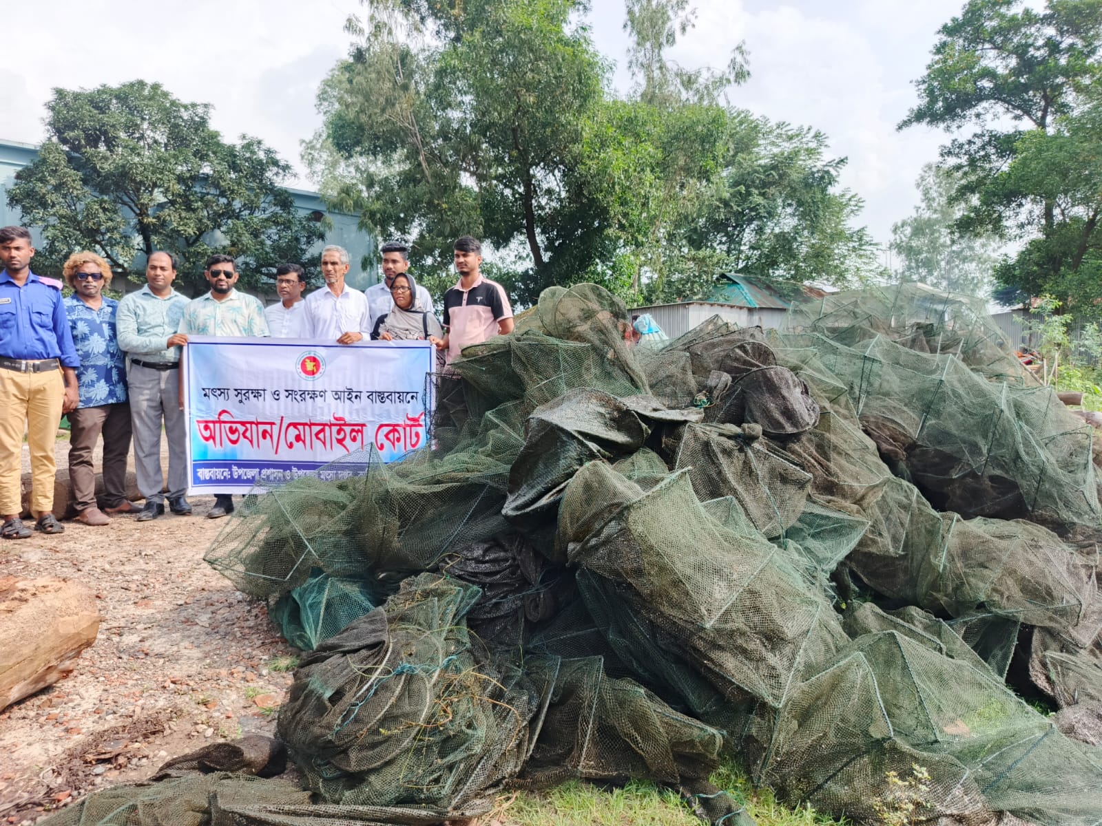 আটককৃত মৎস্য ধরার সরঞ্জাম বাজারের মূল্য প্রায় তিন লক্ষ টাকা।