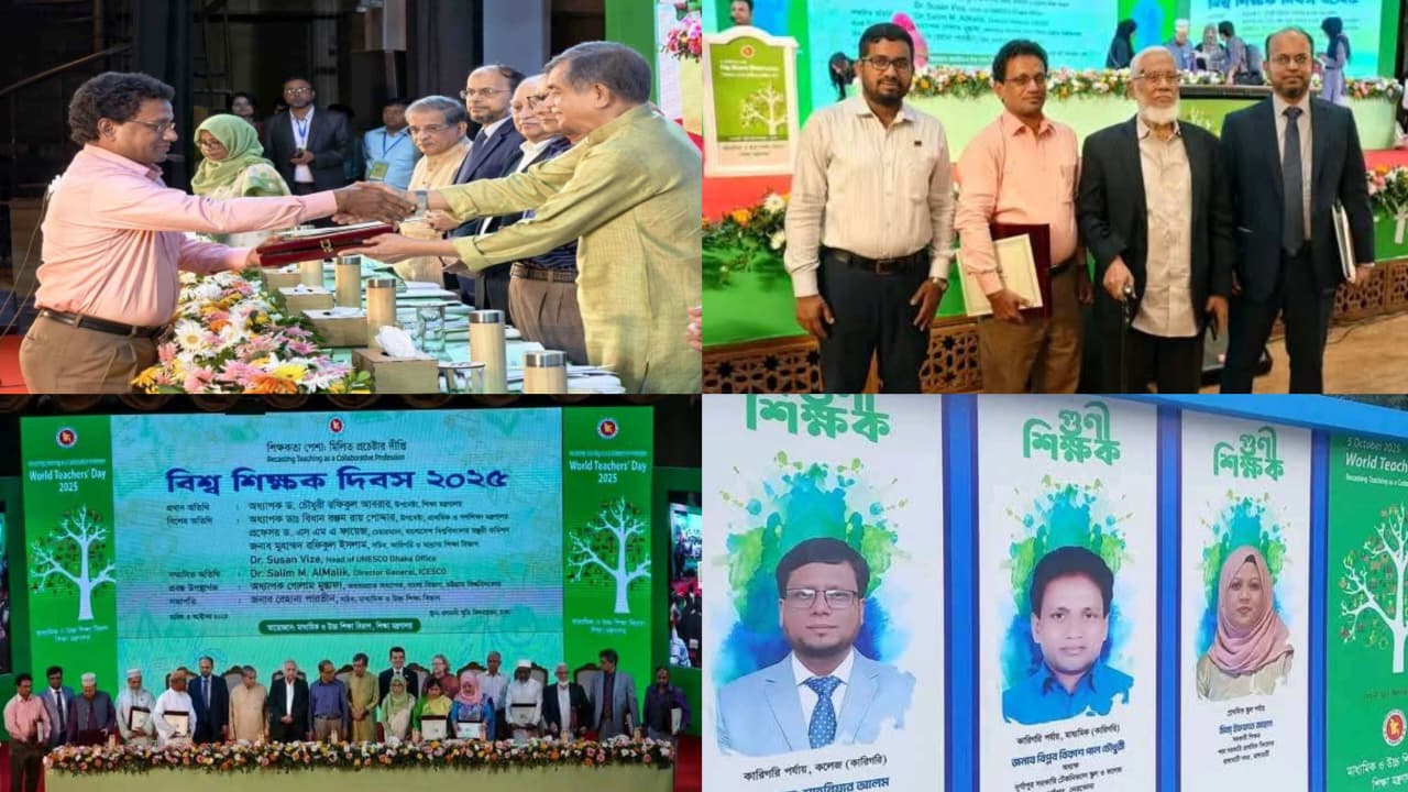বিশ্ব শিক্ষক দিবসে ঢাকার ওসমানী স্মৃতি মিলনায়তনে আয়োজিত অনুষ্ঠানে এ সম্মাননা প্রদান করা হয়।