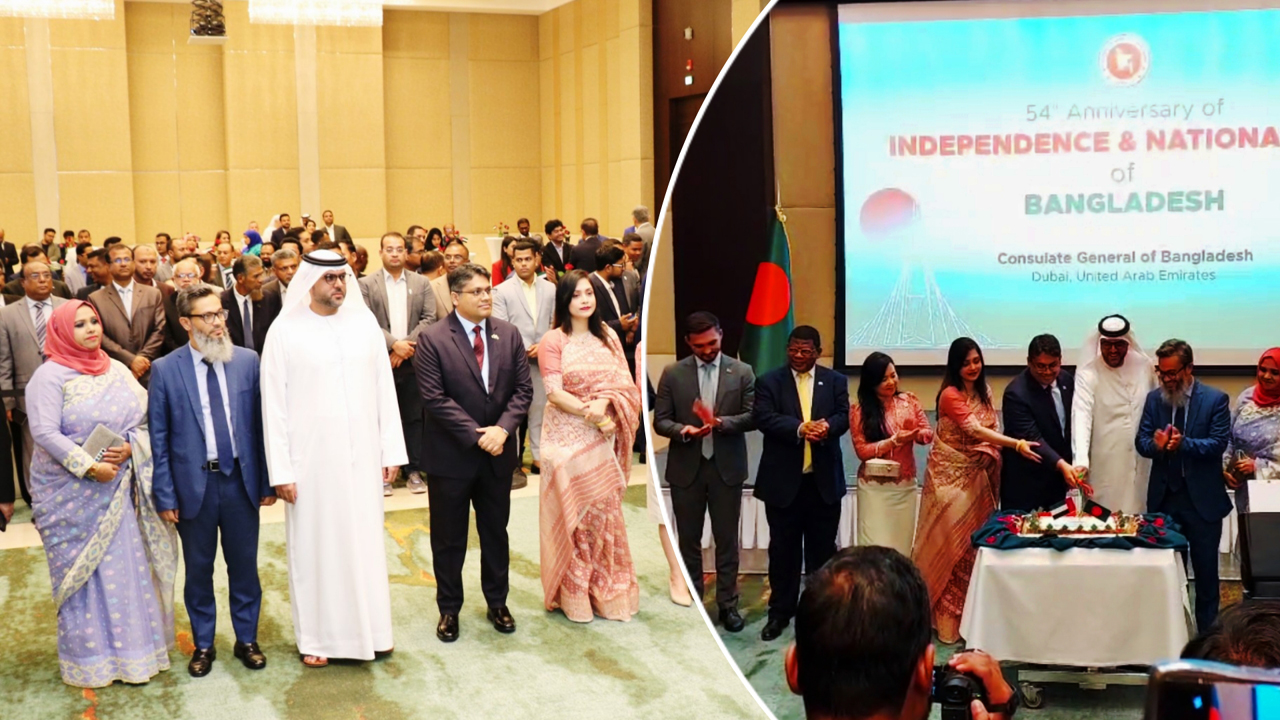বাংলাদেশের ৫৪তম স্বাধীনতা ও জাতীয় দিবস উদযাপন উপলক্ষ্যে জমকালো সংবর্ধনার আয়োজন করে বাংলাদেশ কনস্যুলেট জেনারেল দুবাই। মঙ্গলবার (২২ এপ্রিল) রাতে পাঁচ তারকা হোটেল অনন্তরার বলরুমে এ সংবর্ধনার আয়োজন করা হয়। যেখানে প্রধান অতিথি হিসেবে উপস্থিত ছিলেন আমিরাতের পররাষ্ট্র মন্ত্রণালয়ের দুবাই অফিসের হেড অব প্রোটোকল অ্যান্ড অপারেশন মুহাম্মদ আল বাহারি।