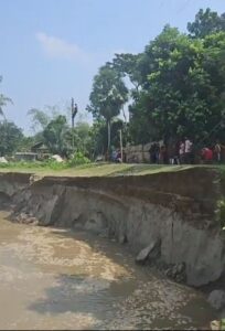 ফরিদপুরের আলফাডাঙ্গায় নদীভাঙনে বিলীন হওয়ার পথে মাদ্রাসা, মসজিদ ও ঘরবাড়ী।