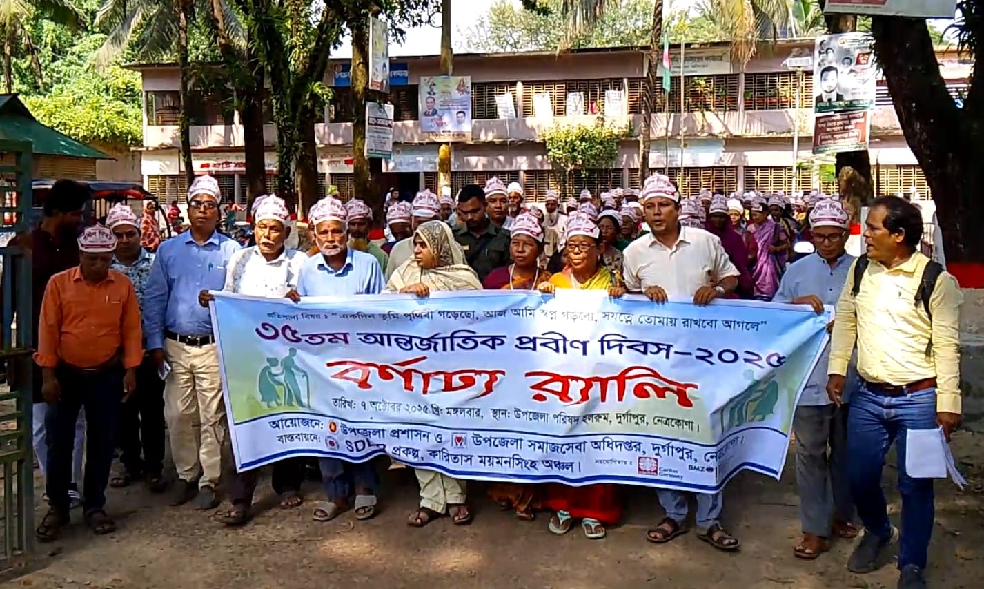 “একদিন তুমি পৃথিবী গড়েছো,আজ আমি স্বপ্ন গড়বো,সযত্নে তোমায় রাখবো আগলে” প্রতিপাদ্যে নেত্রকোণার দুর্গাপুরে ৩৫তম আন্তর্জাতিক প্রবীণ দিবস উদযাপিত হয়েছে। দিবসটি