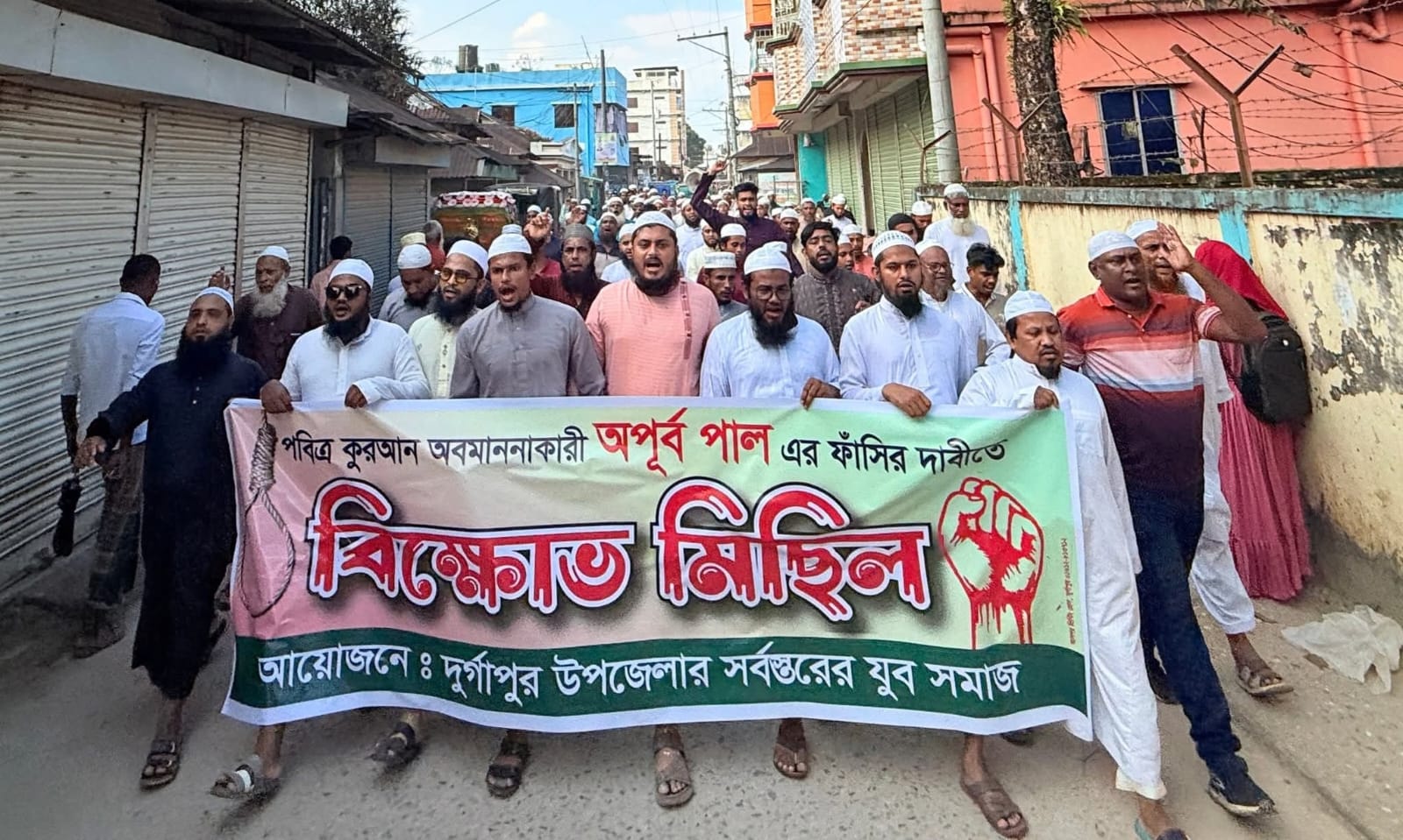 পবিত্র কুরআন অবমাননাকারী অপূর্ব পালের ফাঁসির দাবিতে নেত্রকোণায় বিক্ষোভ মিছিল