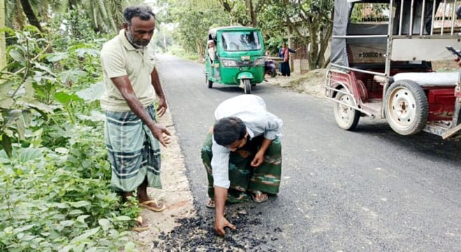 হাত দিলেই উঠে যাচ্ছে রাস্তার কার্পেটিং