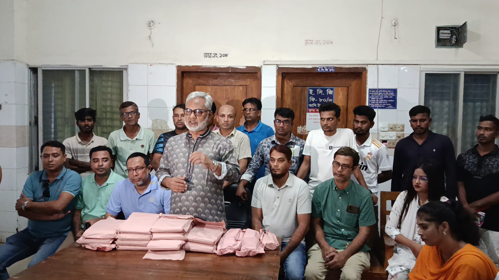 সিরাজগঞ্জ ২৫০ শয্যা জেনারেল হাসপাতালের চতুর্থ শ্রেণীর সনাতনী হিন্দু ধর্মাবলম্বী কর্মচারীদের মধ্যে শারদীয় দুর্গাপূজা উপলক্ষে শাড়ি ও লুঙ্গি বিতরণ করা
