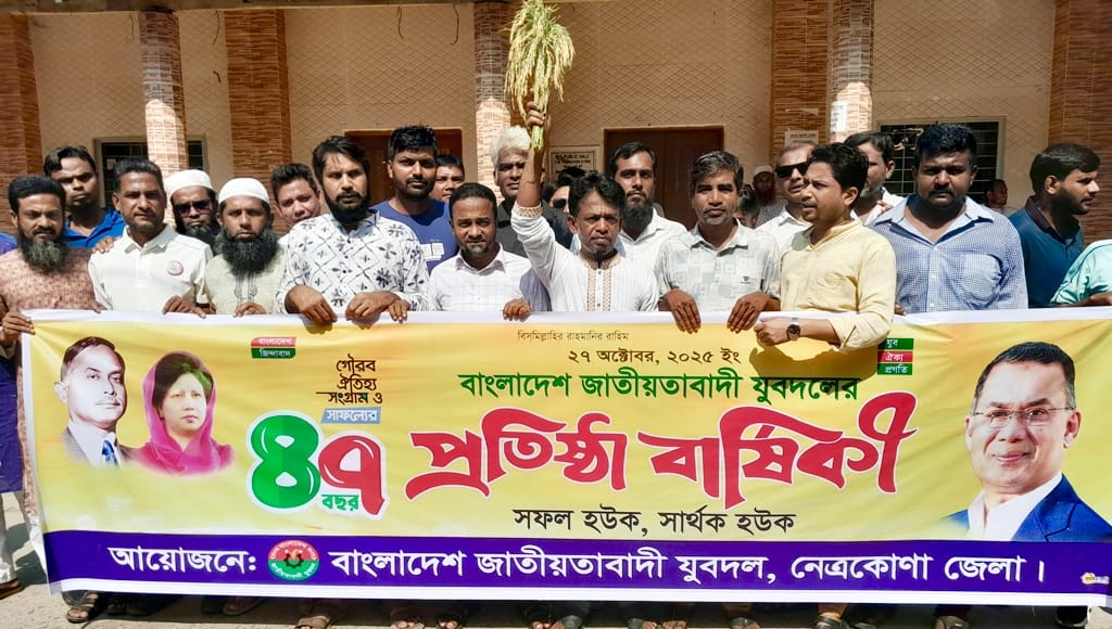 বর্ণাঢ্য আয়োজনে নেত্রকোণায় জাতীয়তাবাদী যুবদলের ৪৭তম প্রতিষ্ঠাবার্ষিকী উদযাপন